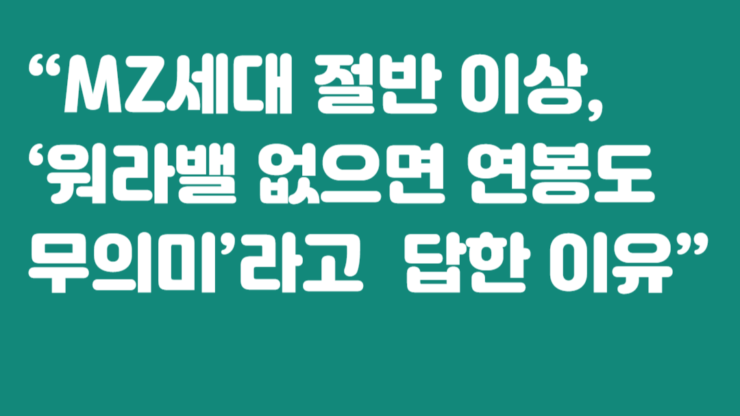 MZ세대(20~40대)는 이제 ‘단순한 월급쟁이’가 아닙니다. 이들은 삶의 질과 일하는 방식에서 만족을 중시하며, ’워라밸(워킹 라이프 밸런스)’이 높으면 연봉이 다소 낮아도 감수할 수 있다는 인식을 갖고 있습니다.