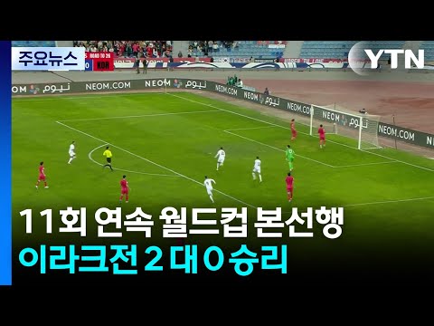"한국 축구 대표팀, 이라크에 2-0 승리하며 2026 북중미 월드컵 본선 진출 확정! 아시아 최초 11회 연속 진출 대기록 달성."