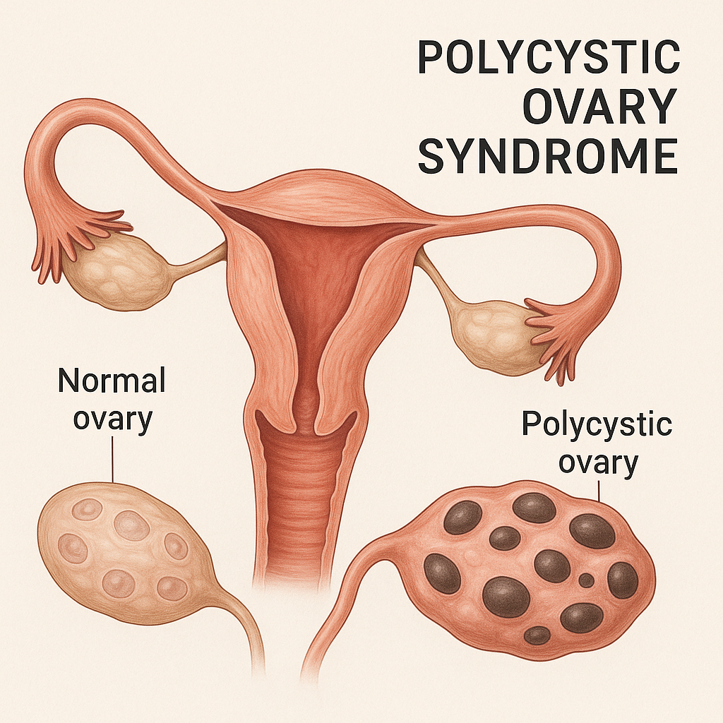 다낭성난소증후군(Polycystic Ovary Syndrome, PCOS) 은 난소에 작은 물혹(난포)이 여러 개 생기고, 배란이 잘 되지 않는 증상을 동반하는 내분비계 질환입니다.