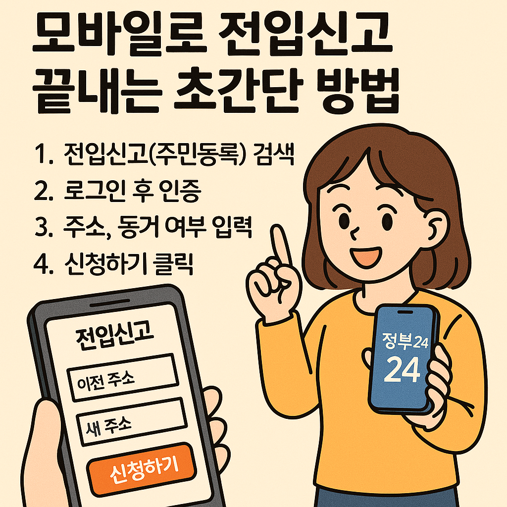 예전에는 동사무소(행정복지센터)에 가야만 했지만, 지금은 정부24 앱을 통해 모바일로 전입신고가 가능합니다.
