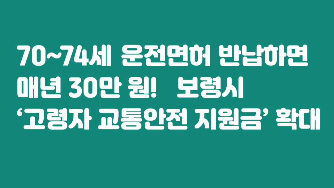 보령시 거주 70~74세 어르신 운전면허 반납 시 매년 30만 원 지급! 자격조건, 신청방법, 지급금액, 유효기간 등 2025년 최신 제도 완벽 정리. 지금 확인하세요.