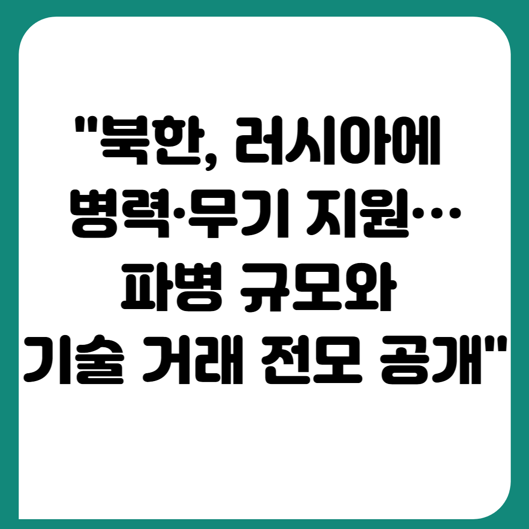 "북한이 러시아에 병력과 무기를 지원하며 군사 협력을 강화하고 있습니다. 파병 규모, 무기 제공 내역, 첨단 군사 기술 이전 현황과 함께 커뮤니티 Q&A, 정부 반응, 관련 뉴스까지 정리했습니다."