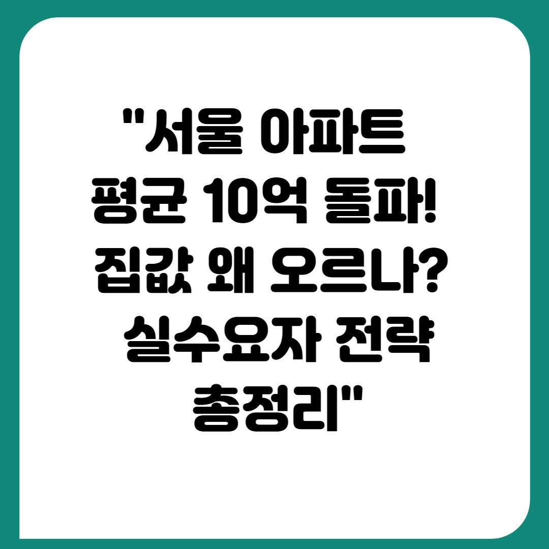 "서울 아파트 평균값 10억 원 돌파! 집값 상승 원인, 정책 변화, 실수요자 전략과 Q&A까지 정리했습니다."