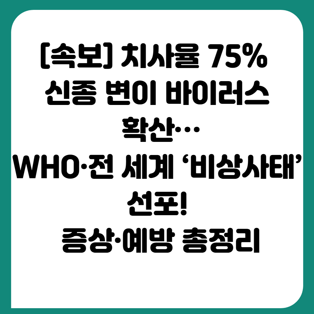 "치사율 75%에 달하는 신종 변이 바이러스가 중동 지역을 중심으로 확산 중입니다. WHO와 전 세계가 비상사태를 선포하며 대응에 나섰으며, 개인이 지켜야 할 예방 수칙과 백신 개발 상황까지 종합 정리했습니다.">