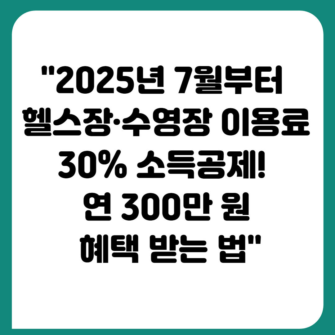"2025년 7월부터 헬스장·수영장 이용료 30% 소득공제! 연 300만 원 한도, 건강과 세금 혜택을 동시에 누리세요."