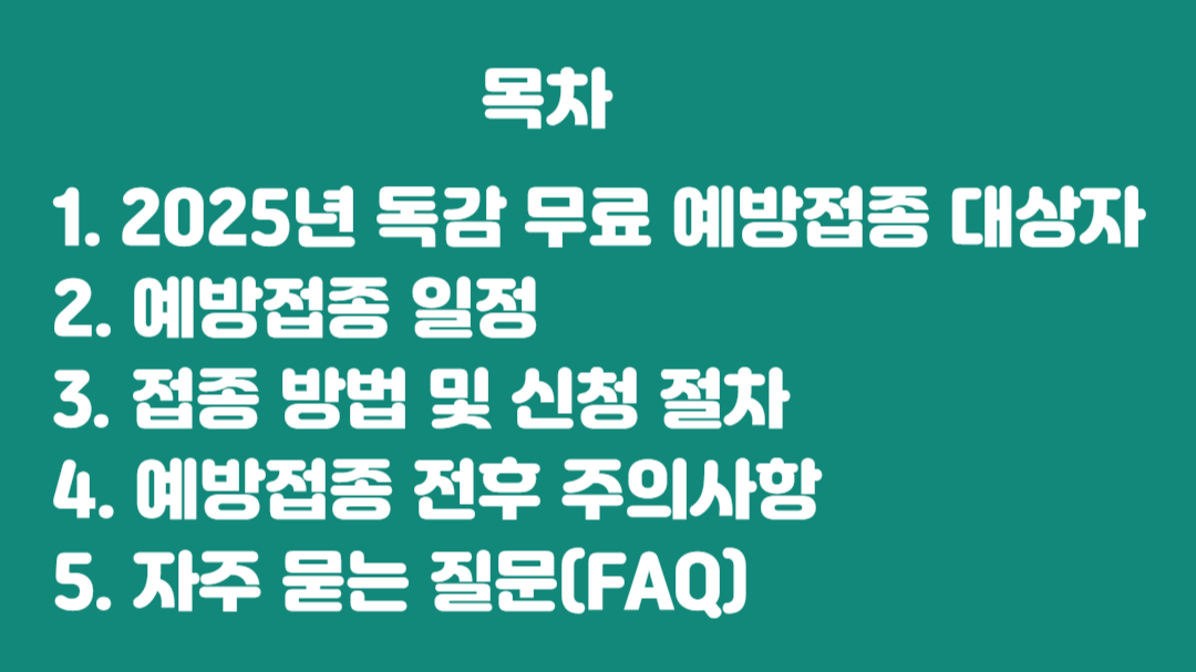 "2025년 독감 예방접종 무료대상과 연령별 접종 일정, 신청 방법, 주의사항까지 한눈에 정리했습니다. 무료 대상자라면 지금 바로 확인하세요!"