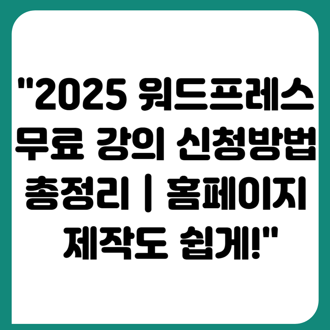 "워드프레스 무료 강의 신청 방법부터 대상 조건, 전액 지원 혜택까지 자세히 소개합니다. 블로그 제작, 홈페이지 운영을 시작하려는 분들께 꼭 필요한 디지털 역량 교육 안내!"