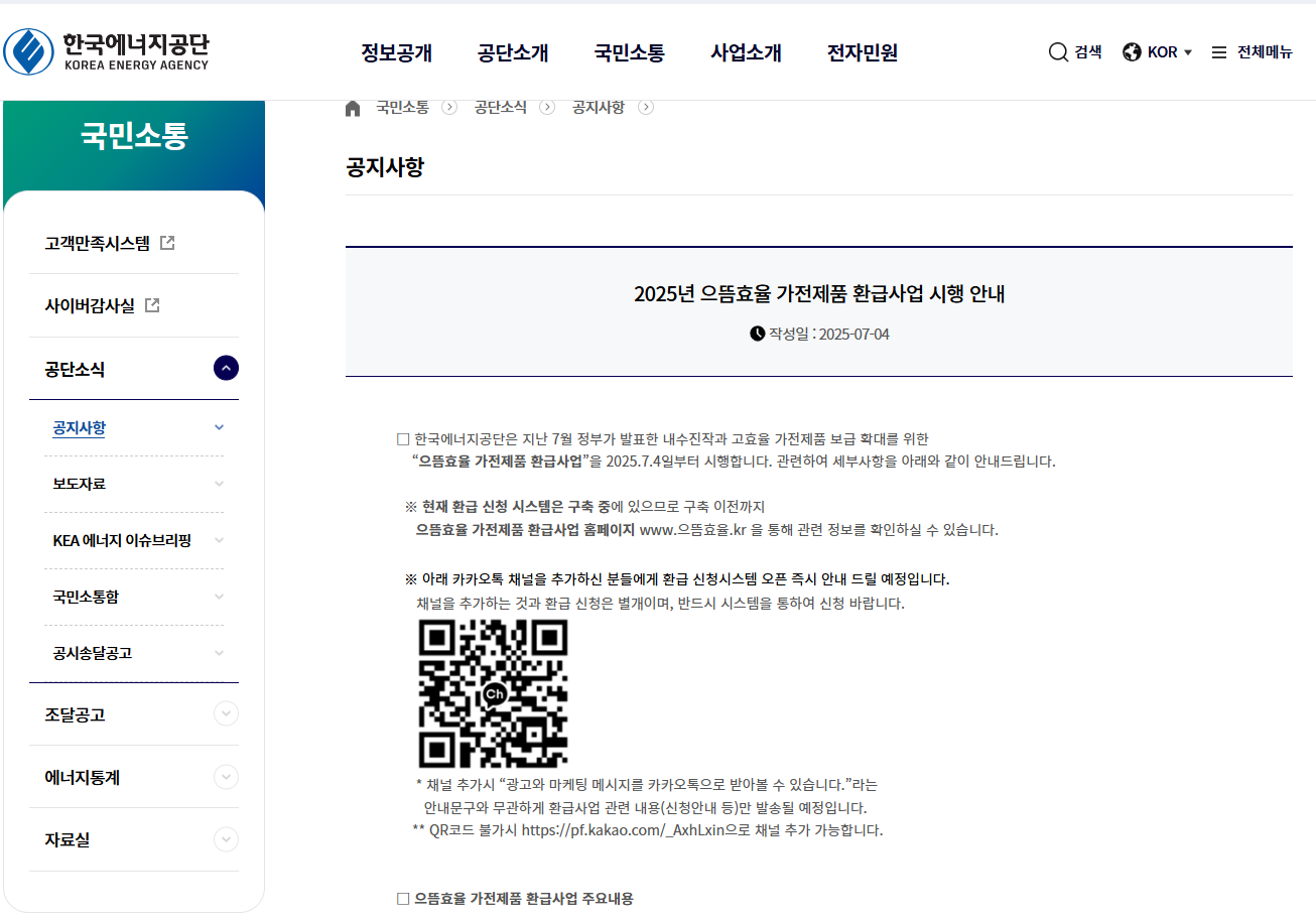- 한국에너지공단 으뜸효율 가전제품 환급사업 홈페이지 접속