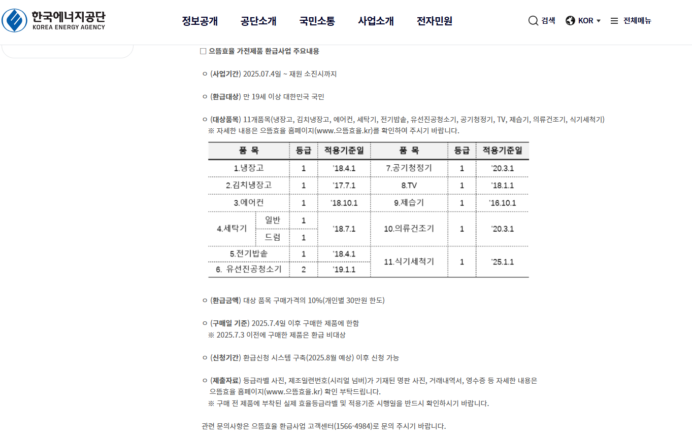 한국에너지공단이 주관하며, 일정 기준을 충족한 1등급 가전제품을 구매한 소비자에게