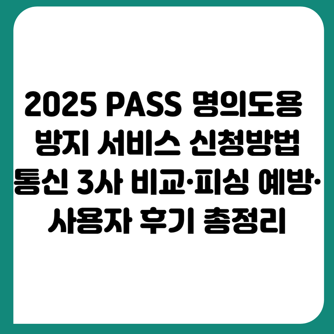 "2025 PASS 명의도용 방지 서비스 신청방법, 통신 3사 비교, 주요 기능, 스미싱·피싱 예방 효과, 명의도용 대응법, 사용자 후기와 FAQ까지 총정리했습니다.">