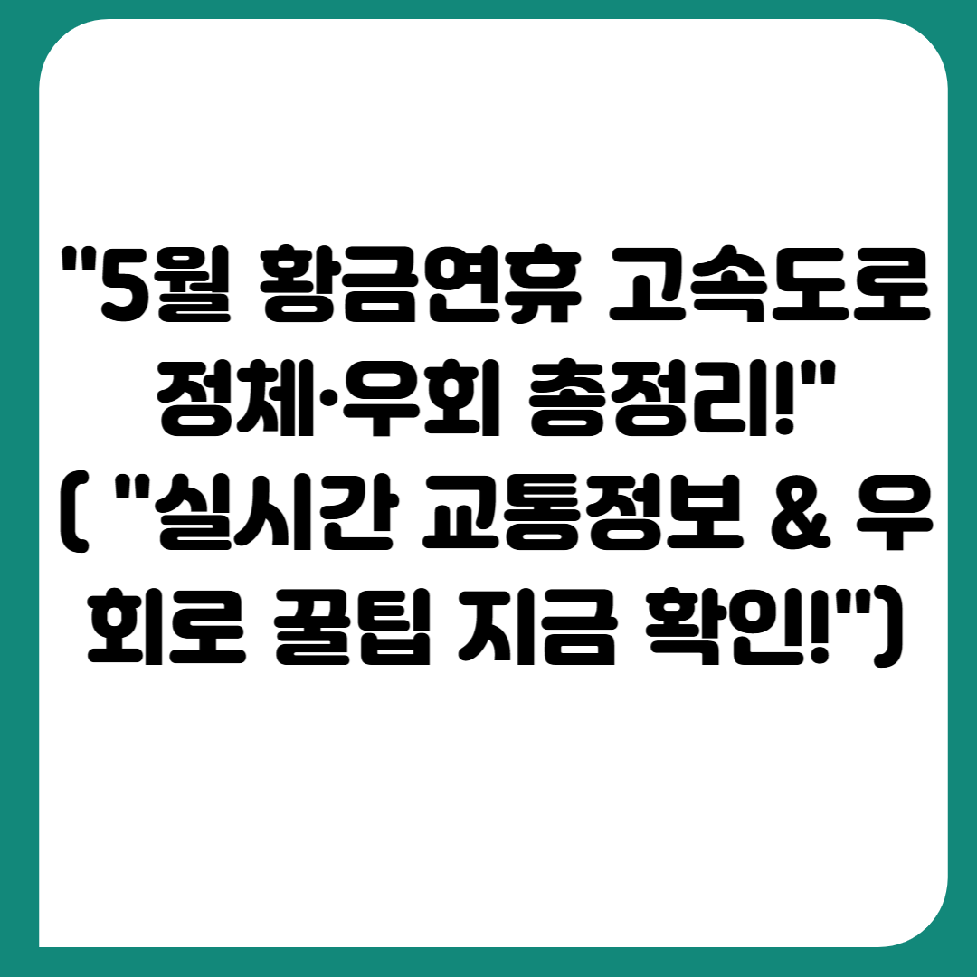 5월 황금연휴 고속도로 교통대란은 예고된 상황입니다. 그러나 미리 우회 노선을 파악하고 실시간 정보를 체크하면 막힘 없는 쾌적한 여행이 가능합니다. 오늘 안내드린 우회로와 교통 앱을 적극 활용하세요. 안전 운전이 최고의 여행 준비입니다!