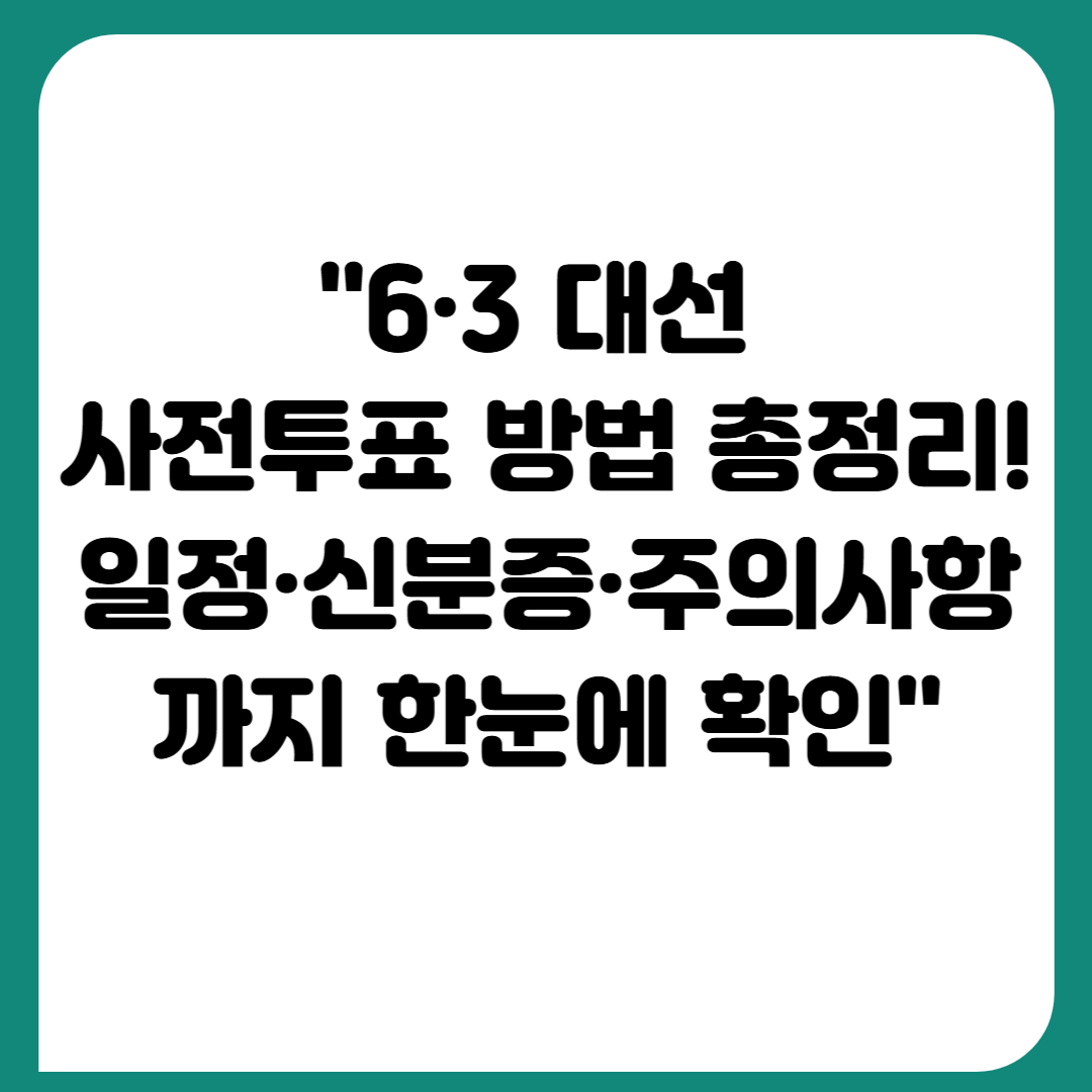 "6·3 대선 사전투표 총정리! 일정, 장소, 준비물, 주의사항부터 실시간 Q&A까지 꼭 알아야 할 정보 한눈에 확인하세요."
