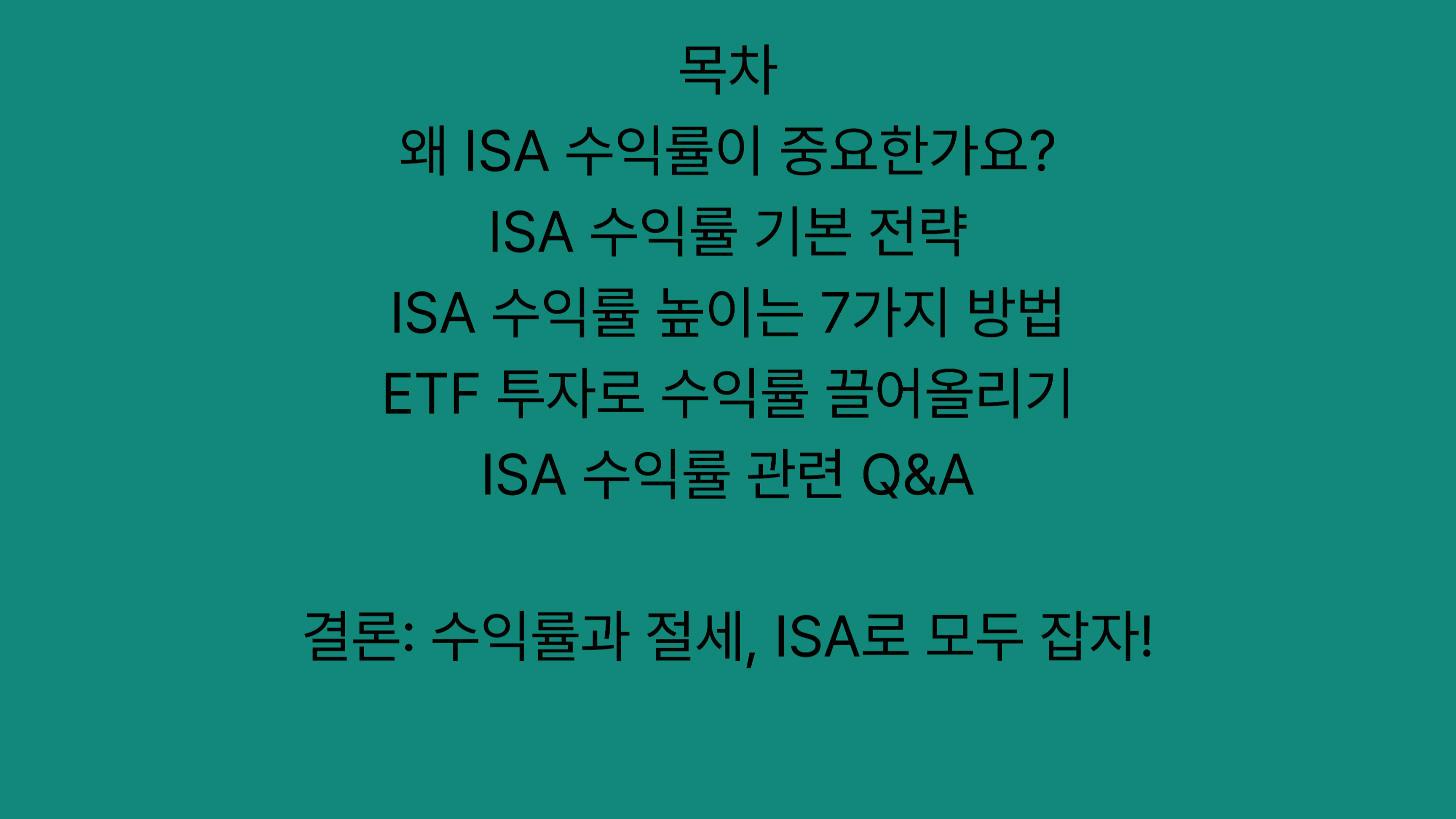 따라서 ISA를 단순히 보유하는 것이 아닌, **수익률을 높이는 전략적 운용**이 필수입니다.